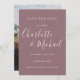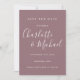 Featuring signature style names, this elegant mauve save-the-date card can be personalized with your special wedding day information in chic typography and your special photo on the reverse. Designed by Thisisnotme©