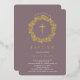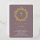 Beautiful Gold Foil Baptism invitations featuring a delicate floral wreath and cross set on a mauve background. Flip our invitation over to view a coordinating back for an extra special touch. Visit our shop to view our entire religious collection.