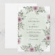 This design features hand-painted watercolor roses in shades of dusty mauve and pale lavender. Abundant eucalyptus leaves and delicate greenery sprigs create a lush, forest-inspired botanical arrangement. The palette of sage green and muted purple evokes a romantic and ethereal atmosphere. This artwork is well-suited for an elegant spring or summer outdoor event.