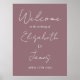 This mauve minimalist elegant script wedding welcome sign can be personalised with your information in chic typography. Designed by Thisisnotme©