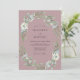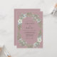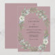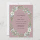 This design features a lush watercolor botanical arrangement set against a soft mauve background. The artwork includes sage green eucalyptus foliage, pristine white anemones, and tiny blue blossoms. Its serene, airy aesthetic is perfect for a romantic spring or countryside event. The hand-painted style provides a gentle, natural feel to the artistry.