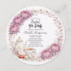 Romantic bridal shower design featuring a mauve palette tea party theme with a circular floral arrangement, teacup, teapot and dessert accents. Perfect for vintage inspired celebrations, feminine afternoon tea gatherings and elegant bride to be events. A soft and timeless choice for a delicate tea party bridal shower.