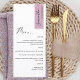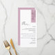 Why spend in place cards and menu cards when you can have an elegant All-in-one elegant Menu personalised with each guest name! Contemporary, simple and elegant design with beautiful modern hand written calligraphy. Stripe on the top right corner in mauve tone with guest name in black. Back in same mauve as stripe. Ability to change both stripe colour or back by selecting "customise further". NOTE: please an individual order for each menu by adding guest name into menu, add menu into shopping cart; then come back to menu, add second guest name, add menu to shopping cart...continue with this process with all guest names on your list. For short first guest names, add with your keyboard spacebar a few empty "spaces" before the name, to centre it better. Design available in a variety of colour choices. Part of our "Mauve and Purple Event Signs and Products" collection with a variety of coordinating products available.