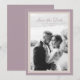 Mauve photo wedding save the date card for a romantic elegant wedding announcement. This refined dusty mauve save the date reflects modern minimal aesthetics and timeless Old Money stationery style, perfect for a sophisticated romantic bride.