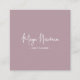 A sleek and stylish square business card featuring a solid and elegant soft PINK MAUVE background with botanical vibes with your name or company name in an elegant signature script. Fully customisable to match your brand identity—edit the background colour, text, and logo effortlessly.