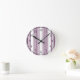 Mauve purple and white five stripes pattern round clock