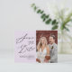 Mauve Purple Elegant Script Modern Photo Minimalist Wedding Save The Date Announcement Postcard. Let your family, friends and colleagues know that you have set a date for your wedding celebration with this elegant, stylish and modern wedding save the date invitation card. All the texts are pre-arranged for you to personalise easily and quickly with your own details.