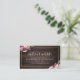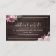 Watercolor botanical floral design in mauve purple, mulberry, dusty rose and peach colour on dark barn wood grain background, with modern script and couple names on the back, elegant and stylish, great wedding website insert cards for rustic botanical garden wedding in fall and winter.