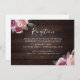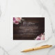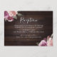 Watercolor botanical floral design in mauve purple, mulberry, dusty rose and peach colour on dark barn wood grain background, with modern script and text, elegant and stylish, great wedding reception cards for rustic botanical garden wedding in fall and winter.