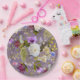 Floral medley of real flowers in harmonious purple, cream and ruby tints with a mauve purple background. Lovely addition or favour gift for bridal showers, weddings, and events with a trendy purple palette. Wildflower themes, Boho, Garden.