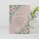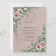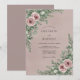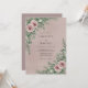 This design features a sophisticated palette of dusty mauve and sage green, creating a romantic and serene atmosphere. Lush watercolor roses in a soft pink hue are nestled among silver dollar eucalyptus leaves and delicate greenery sprays. The muted tones and elegant botanical elements provide a timeless look for a classic spring or summer event.