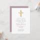 Mauve Script Religious Cross Boy First Communion Invitation