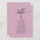 Help your guests find their table with this elegant mauve modern seating plan cards with guests names. Double sided cards so guests can look from both, front or back for their names. Clear space all around giving you the liberty to use clips or punch hole for hanging displays, or use table holder/frame. mauve background and black text. Modern hand written calligraphy details. Several colour options. Have all table numbers in same colour or mix colours according to your event's colour theme. Part of our "Mauve and Purple Event Signs and Products" collection with a variety of coordinating products available, including table number cards and menus.