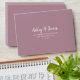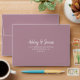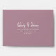 Chic, modern and simple self-addressed RSVP envelope with your names in white elegant handwritten script calligraphy on a mauve purple background. Simply add your names and address. Exclusively designed for you by Happy Dolphin Studio.