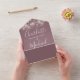 All in one wedding invitation with pretty string lights, signature style names and chic typography on a mauve background. The invitation includes a perforated RSVP card featuring a QR code. Designed by Thisisnotme©