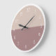 This modern wall decor clock was designed with a geometric mauve and cream coloured background and includes fancy clock face numbers that have some character and style. Created for your kitchen as a timepiece and home decor accent.