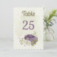 mauve white flowers greenery table number card