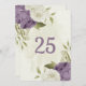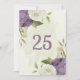mauve white flowers greenery table number card