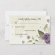 Beautiful romantic wedding response card featuring mauve and white flowers and some pretty green leaves .
