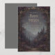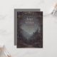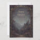 I’ve captured a world where dark romance meets high fantasy in this mist-veiled landscape. A majestic Gothic castle with sharp, needle-like spires rises from a hillside of moody mauve tree foliage and deep evergreen pine. In the distance, jagged misty mountain peaks disappear into a sombre, heavy sky, creating an atmosphere of ancient mystery and storied prestige. The entire scene is elegantly encased in an ornate gold border with delicate leaf accents that I’ve designed to give your announcement an antique, heirloom quality. Envision this dramatic scenery as the gateway to your legendary celebration. It serves as a breathtaking wedding invitation backdrop for a winter gala, a "Til Death" themed ceremony, or a mystical evening event. To truly draw people in, I suggest printing this on felt-textured paper or heavyweight cream cardstock to enhance the depth of the watercolor textures. Imagine this paired with a burnished gold wax seal and a dark plum velvet ribbon—it’s not just an invitation; it’s a curated keepsake that invites your guests to step out of the ordinary and into your own mist-shrouded fairytale.