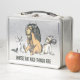 This is a standard metal lunchbox that appears to work just fine. We designed this box ourselves with an uploaded photo and custom text on the front and back. It looks absolutely beautiful except the front of the lunchbox is not centered like it shows in the photo. The print borders don't align with the inset flat part of the box where the preview photo online showed it perfectly centered in there. The back looks nice and centered though.