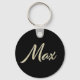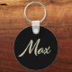 Ein sehr schöner edler personalisierter Button Schlüsselanhänger im whitegold Lettering Look auf schwarz für Max.