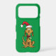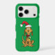 This adorable illustration features Max the Dog sitting patiently, fully embodying the holiday spirit—even if he looks slightly confused by it all! He is dressed in a floppy red Santa hat and a chunky red collar, which is charmingly adorned with a green Christmas ornament. Max's classic, expressive eyes and loyal posture make this image the perfect, heartwarming graphic for anyone who loves the true hero of the Grinch story!