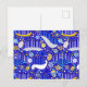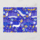 Colourful dreidels, menorahs, and stars on a rich blue background. Make it your own with personalisation!