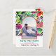 Introducing the vibrant and lively Save the Date announcement postcard, adorned with a burst of maximalist colourful tropical leaves and an elegant arch. This unique design showcases the couple's cherished photo, beautifully framed by a captivating pattern of tropical leaves that stretches across the top two-thirds of the postcard. Below the photo, in a refreshing shade of green, the phrase "Save the Date" is elegantly displayed, accompanied by the significant date and the names of the couple, ensuring that this announcement captures the attention and excitement of all who receive it.