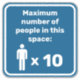 Maximum number of people signage for close spaces. Vector icon with custom colours. Custom background colour. Custom text.