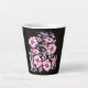 This floral graphic, is displayed in a diamond pattern, with clusters of flower blooms, petals, and leaves, in muted, colours of; pink, fuschia, lavender, mauve, green, and white-against a backdrop of black.