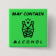 This playful button features bold black typography that reads “May Contain Alcohol,” accented by two clinking bottles and a vibrant green background. Whether you’re heading to a party, a festival, or just want to give your backpack or jacket some bold personality, this design adds a splash of sass and humour. It’s the perfect wearable wink for those who appreciate a cheeky vibe and a good drink.