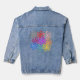 This women's denim jacket has a nature design of sets of three flowers in fading shades of the same colour. If you like the design but want different colours, message me.