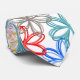 This necktie has a nature design of repeating sets if three flowers in fading shades of the same colour.