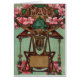 Month of May. Zodiac sign Gemini. Beautiful vintage Art Nouveau astrology artwork, with Art Deco influence, published as a postcard in 1911. Very colourful with birth flower, emerald birth stone, bright pink and green colours and block letters.