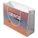 Gift bag with inspirational quote depicts a ship sailing on the water, with light blue and pink skies. It features a paraphrase taken from the beloved Christian hymn Amazing Grace, "May I always find your grace amazing,"