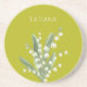 May Lily of the Valley Floral Bouquet Custom Name Coaster