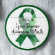 At the centre, a vibrant green awareness ribbon takes focus, representing the fight against Lyme disease. A bold green border frames the button, giving it a polished and eye-catching look.