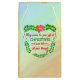 These two personalised and stylish glossy gift bags were simply ideal to carry wedding gifts wrapped in the matching gift wrapping paper. The customised text printed on the gift bags was precisely as ordered and while the photo does not quite do the gift bags justice, rest assured they look fabulous. The gift bags were securely packaged for safe transit arriving undamaged and it was a speedy turnaround from ordering to delivery. Thank you Zazzle for another 5-star transaction in every way!