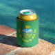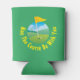 This fun design shows a golf course, with a hole and flag in the foreground. The curved text, at the bottom, of the design reads 'May The Course Be With You.' You can customise this can cooler by changing the background colour.