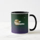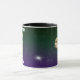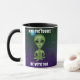 Hand drawn Extra terrestrial mug with pun and quote, "May the Source be with You." Coffee mug from My Paranormal. Starry night background.