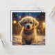 Cute puppy dog outside on a snowy night personalised Christmas card.