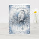 This elegant Christmas greeting card features a beautifully illustrated snowy owl perched on an icy winter branch, surrounded by delicate snowflakes, frosted ornaments, and shimmering winter details. Soft blue and silver tones create a serene holiday atmosphere, perfectly complemented by the timeless message “May Your Days Be Merry & Bright” and “Season’s Greetings.” Ideal for sending warm wishes with a touch of winter magic, this card is perfect for nature lovers and those who appreciate refined holiday art.