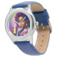 Great price point! Grandson loved his "own name" watch. Great for teaching time! Crisp clear picture! Sturdy leather band. Totally well made product.