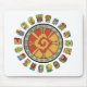 The Mayan Haab' Calendar comprises eighteen "months" of twenty days each, plus an additional period of five days ("nameless days") at the end of the year known as Uayeb'. This gives a year length of 365 days The Haab' was first used around 550 BCE with the starting point of the December Winter Solstice. The Haab' was the foundation of the agrarian calendar and the month names are based on the seasons and agricultural events. For example the thirteenth month, Mak, may refer to the end of the rainy season and the fourteenth month, K'ank'in, may refer to ripe crops in the fall. The names of these months are: Pop, Uo, Zip, Zotz, Tzec, Xul, Yaxkin, Mol, Ch`chen, Yax, Zac, Chen, Mac, Kankin, Muan, Pax, Kayab, Cumku, and Uayeb. This unique design has the symbol for "Hunab Ku" in the centre. The Maya came to the mathematical certainty of the existence of cosmic consciousness which they named "Hunab Ku", sole dispenser of measurement and movement, to whom they attributed the mathematical structuring of the universe. This divinity they represented by a circle in which was inscribed a square, just as did Pythagoras. The Maya believed that their supreme divinity functioned through a principle of dynamic dualism, or polarity...by which, through the agency of the four elements, air, fire, water, earth...the whole material world was engendered...To the Maya, the earth was not a corpse, it was neither dead nor inert, but a living entity immediately tied to the existence of man.