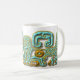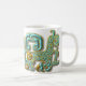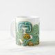 This design comes from a Mayan temple, rendered in gold and turquoise. The Mayan jaguar gods were Lords of the underworld - associated with caves, night, hunting. The black jaguar was lord of the night and the light coloured jaguar was lord of the day.