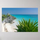 Mayan pyramid above a white sand beach and blue waters at Tulum, Mexico, south of Cancun.
