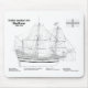 Mayflower ship plans. The famous 17th century ship that transported the Pilgrims to America. Ship Blueprint. Drawing Plans or Schematics with design outline for Mayflower