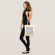 A pretty tote bag with a blue and white abstract, maze-like pattern, designed by Judy Adamson.