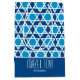 Personalised gift bags are a great way to add a personal touch to your gift-giving! This stylish template features a geometric star pattern and is personalised with the recipient's name. The 'Mazel Tov!' greeting can also be modified or adapted for different occasions. A versatile design that's perfect for family and friends to celebrate birthdays, holidays, Hanukkah, Bar or Bat Mitzvah, graduations, a new home and more! Available with a matte or glossy finish. Colours: navy blue, sky blue and white.